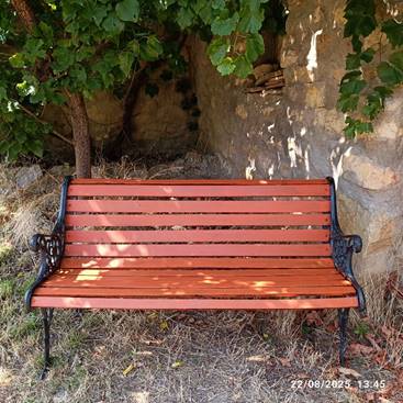 y al llegar a casa, con el polvo del camino y la garganta reseca, otro banco nos espera en un rincón del patio…